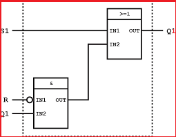 Each program statement is a line called the rung with inputs to the left and the output to the right.