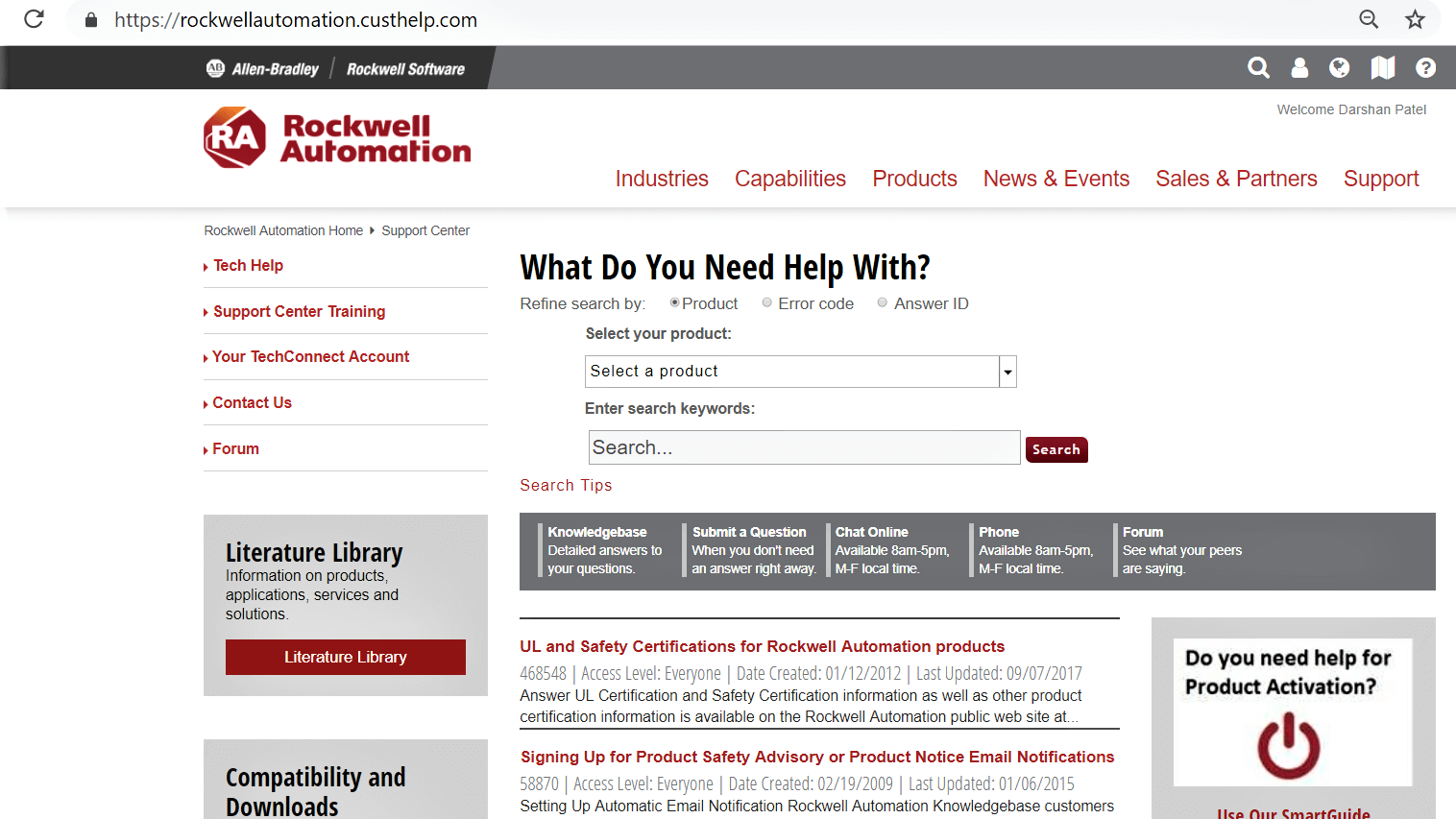 Rockwell knowledge base sign up & log in