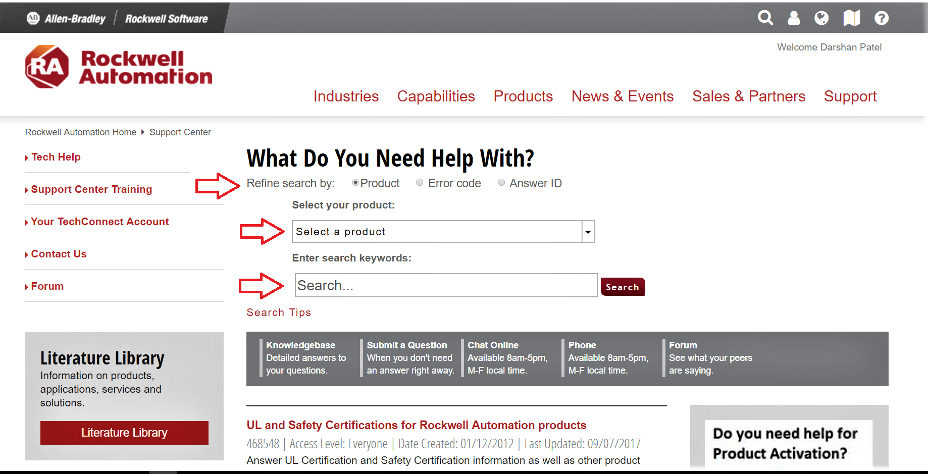 when Rockwell Knowledgebase page load You will see three different tools