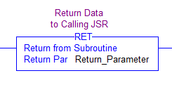 For instance it you were to call a subroutine named “Conveyor_01” with a JSR containing a Return Parameter (Tag), the subroutine “Conveyor_01” must contain a RET instruction with a Return Parameter (Tag or Constant).