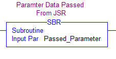 Parameters may be passed to subroutines called out by a JSR instruction. To do this the JSR instruction must contain an Input Parameter (Tag or Constant) and an SBR instruction with an Input Parameter (Tag) must be in the called subroutine.