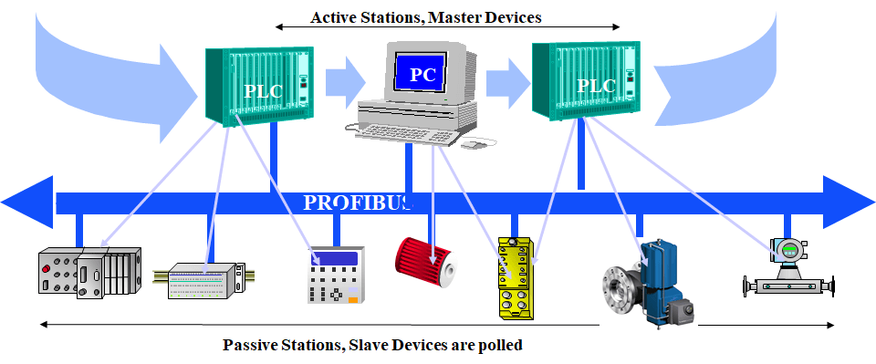 - Profibus DP (Distributed Peripherals) – Communication Between a Master (PC or PLC) and Slaves (Remote I/O, Field Devices)