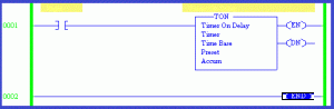 - A TON instruction starts timing when the logic preceding the TON instruction on a rung change from false to true.