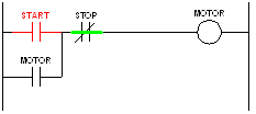- In ladder logic a switch which is allowing current to flow is highlighted in green