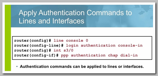 AAA commands to lines and interface